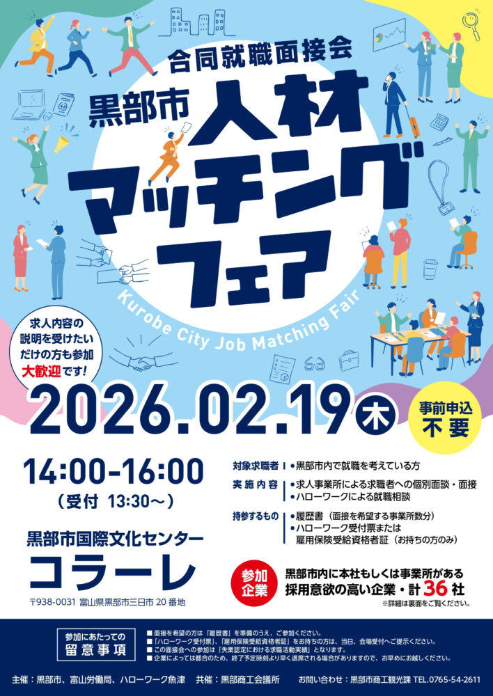 【主催・共催】主催:黒部市、富山労働局、ハローワーク魚津 共催:黒部商工会議所