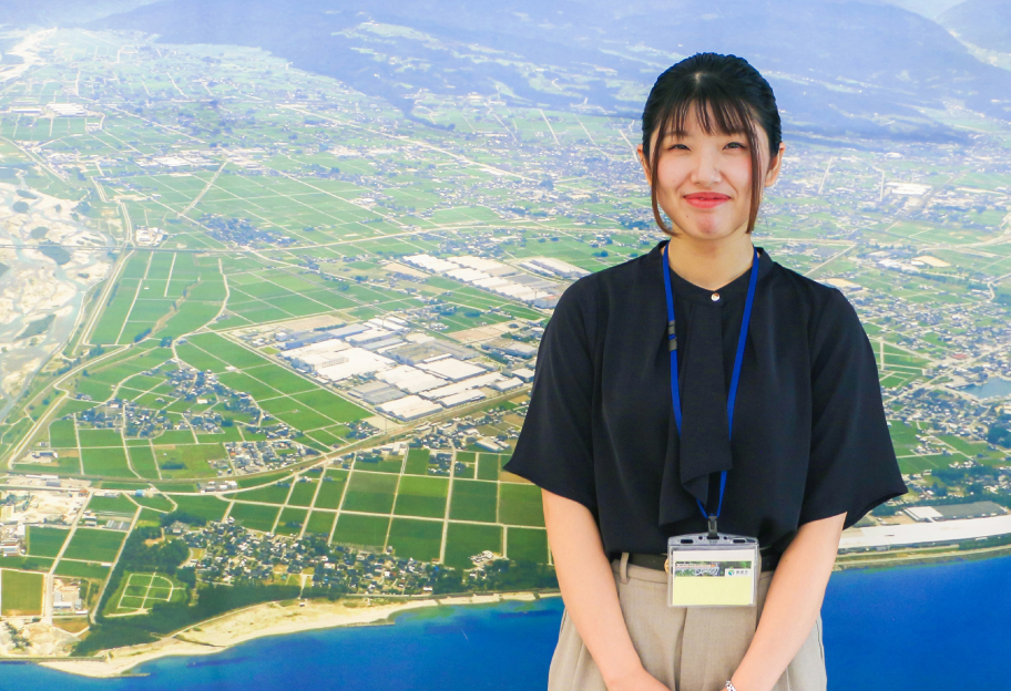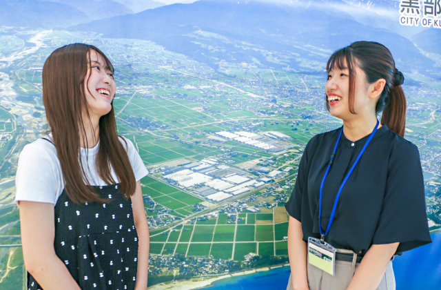 大学は実家のある黒部市から金沢まで新幹線で2時間かけて通学していました。学生時代はコロナ禍で学校に行くことは少なかったですが、4年間通ってみて移動時間が長いことに嫌気が指し、就職先は実家がある黒部市から通える場所がいいと思いました。また、金沢は都会なので、人が多く圧倒されることがありました。地元の黒部は都会すぎず、程よく緑もあって落ち着く場所だと、離れてみて改めて気づきました。